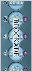 If you play a ship card, you move the marker one space in your favor on the Blockade track (which will be away from you).