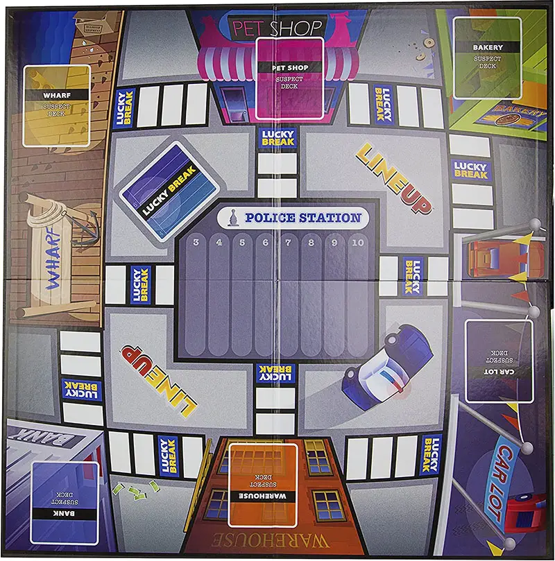 When you stop at the police station, you may request one or more lineups if you have at least one face-down Suspect card in front of you. After completing the lineup(s), your turn is over.