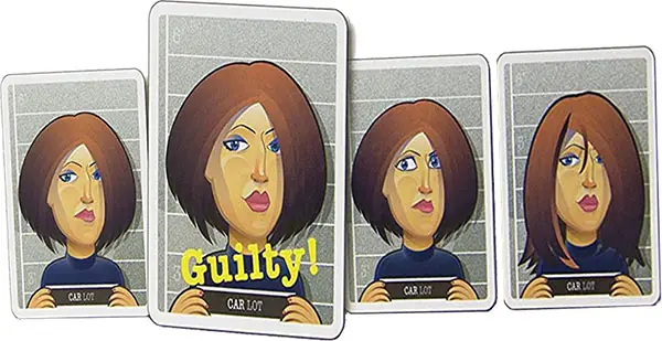 To set up the lineup, select one of your face-down Suspect cards and have another player place it in the card stand labeled "Guilty". This player will then draw additional suspects from the same Suspect deck and place them in card stands labeled "Innocent". The total number of suspects in the lineup will equal your current lineup count.