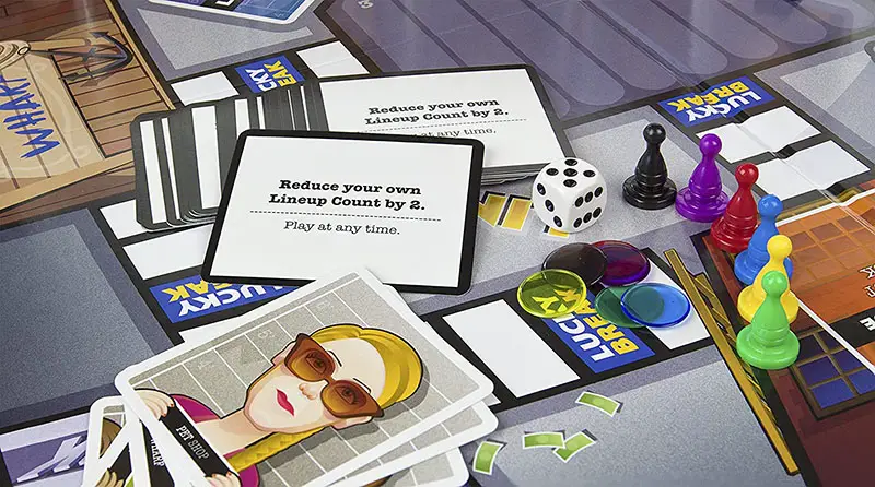 Shuffle the Lucky Break cards and place them face down on the Lucky Break space on the board.