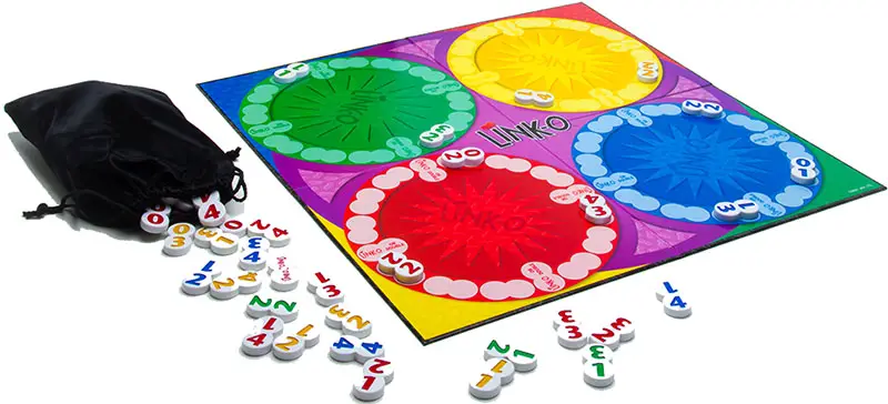 A player plays all of his/her tiles and calls out "LINK-O!" The winner now collects and counts the values of all tiles left in opponents' possession and adds this total to his/her score.