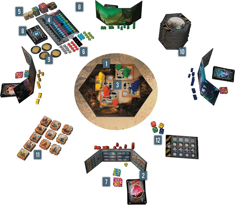 The planet's Exhaustion track is also used as the turn tracker. When the 12th resource is added to the track, it is the end of a normal game.