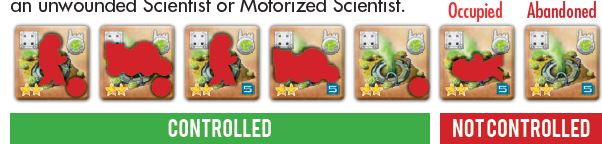 If there are none of these elements, the building is not controlled. It is either abandoned (if it is empty) or simply occupied (if there is only a wounded Scientist on it).