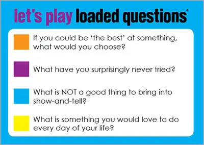 Although every turn offers at least two questions to choose from, if younger players are having trouble understanding the questions or you simply don't like your choices, feel free to simply pick another question on the card. It's just a game!