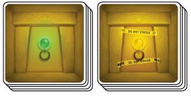 Card backs can give you a hint about how likely a room is to have a guardian. There is 1 guardian out of 4 green rooms, 1 guardian out of 3 yellow rooms, and 1 guardian out of 2 red rooms. Of course, tougher rooms have much more treasure!
