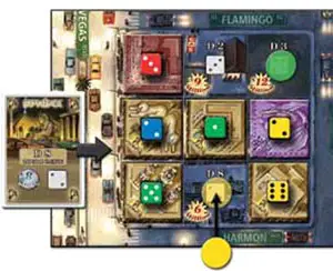- Put the dice back into the spaces they came from. If you have multiple dice in the casino, you decide which go in which tiles.