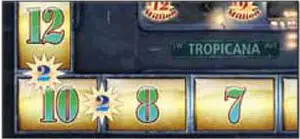 If your scoring chip is on the 8-space on the scoring track and a casino pays you only 1 point, your chip does not advance to the 10-space. If you are paid 2 or 3 points, your chip advances to the 10-space. If you are paid 4 or 5 points, your chip advances to the 12-space.