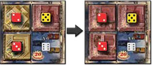 If the lot already has a tile on it, replace the die on the tile with 1 of your dice-keeping the same value. If the tile has no die, place your die with the value printed on the board.