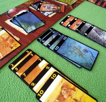 Lost Cities is a two player card game about exploring ancient ruines. The theme is based around archaeological expeditions.