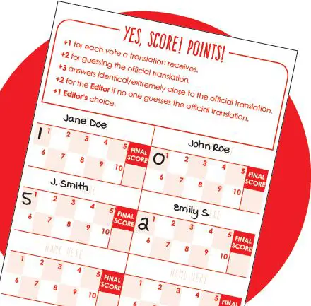 Players use their answer sheets to create funny, clever, or accurate translations.