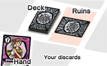 The basic principle in this game is that all information is hidden. Players are only allowed to look at the card in their hand, but not the Ruins or the other players' cards.