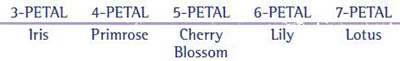 There are five types of flowers in the Lotus Garden and each requires a different number of petals to be completed. The type and petal count is indicated by the number in the upper left of the Petal Card.