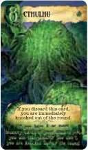 When you discard Cthulhu during your turn, if you already have 2 or more Insanity cards in your discard pile, you win the game. If you do not, you lose the round.