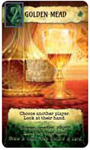 When you discard Golden Mead during your turn, choose another player and look at their hand. Do not reveal it to any other players. Then draw a card (you have 2 cards in your hand now) and discard one.