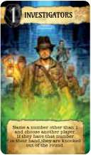 When you discard Investigators during your turn, choose another player and name a number (other than 1). If that player has that number in their hand, they are knocked out of the round.