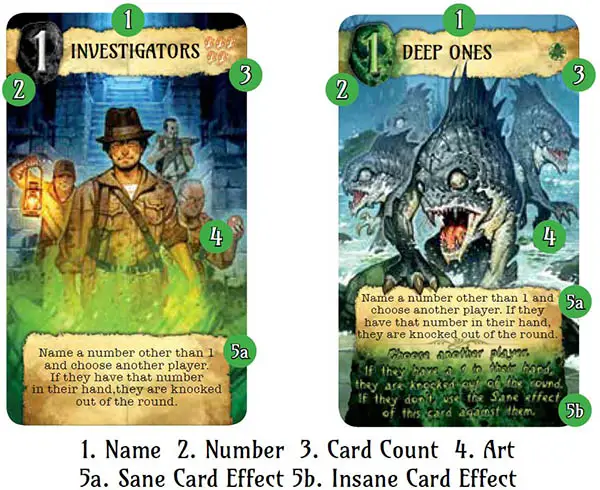 3 Card Count: This is the number of copies of the card in the game. It is also used to indicate whether a card can be used for its Sane effect, or for its Insane effect, when possible (see Insanity, page 7).