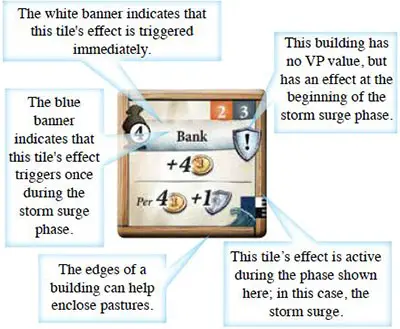 Note: Each player can build only one storm surge building during the game. No new storm surge building tiles are drawn!