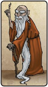 The game proceeds as normal, with the following changes. One player receives the Wise Old Man, in addition to his character. Players keep their characters face down close to the center of the table so that they are all within easy reach.