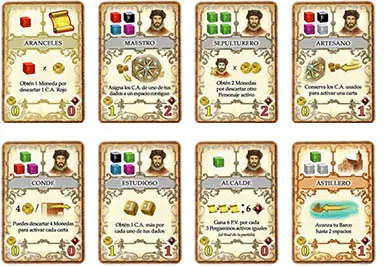 Remember: cards will use the following abbreviations: action cube(s) -AC, gold coin(s) - GC, and prestige point(s) - PP.