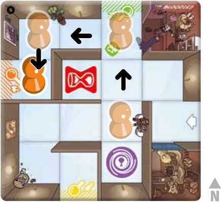 - Brian, who has the NORTH arrow, moves the hero 2 spaces north.
