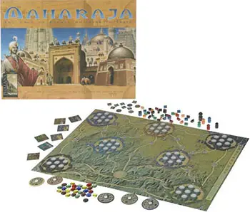 Place Maharaja on the Starting City. Character card 1 - 6 placed next to the board. Use Yogi (Character card #7) only in advanced game.
