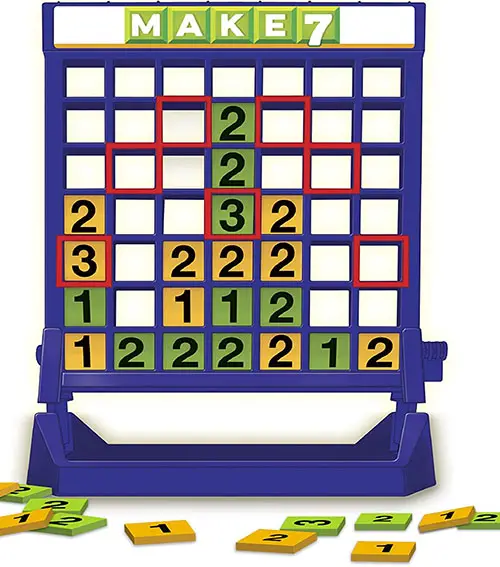 Be the first player to have your color number tiles add up to 7 in a straight line vertically, horizontally or diagonally.