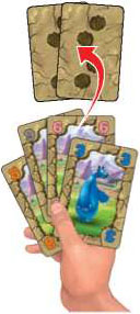 If the card is a dinosaur, the applicable action is carried out (see below). After that, the active player takes the dinosaur into his hand and begins a new round with a new herd.