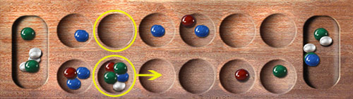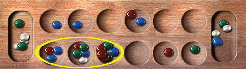 With the extra stone, a sowing from your opponent's threatening pit will overshoot your vulnerable cup.