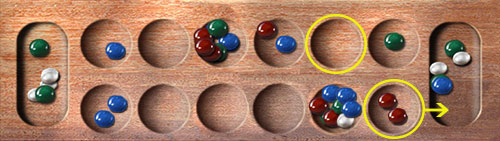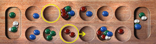 This way, if your opponent proceeds with the intended move, his sowing will end in an empty cup and he will capture no stones.