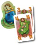 If you have built a hut in the pole area, you place the topmost pole tile from the pile underneath this hut and immediately move your chief's pillar ahead on the chief's track the number of spaces that corresponds to the value of the pole tile.