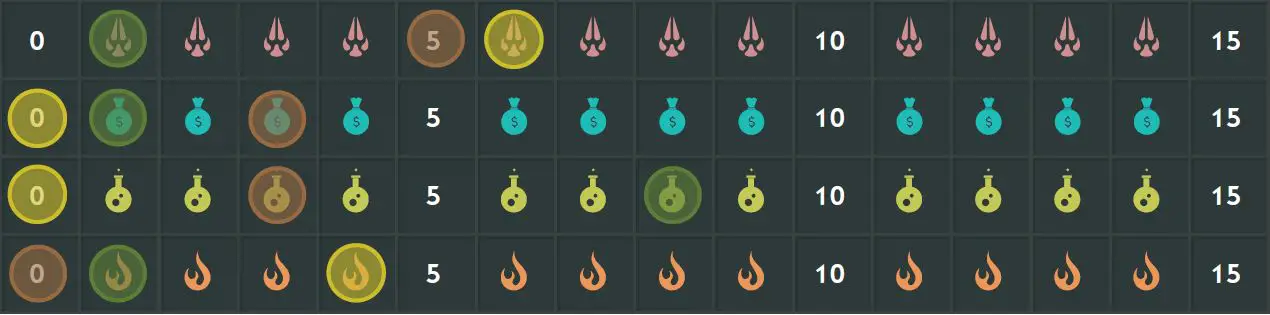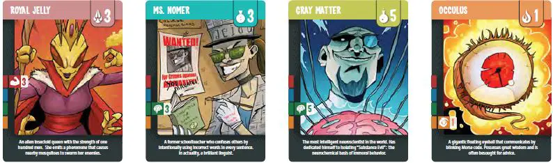 Every turn, 2 Beasts, 2 Criminals, 2 Scientists, and 2 Mystics are available for recruitment. To conduct recruitment, players should refer to their respective Attraction Scores for each of the henchman types.
