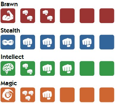 If you then assign this henchman to a contract, they would contribute a total of 6 trait dice: 4 Brawn, 1 Stealth, and 1 Magic. Holy Mackerel!