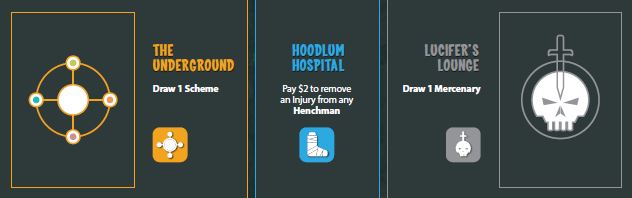 9 Shuffle the Scheme deck and place it, face down, within The Underground Special Location on the gameboard. Shuffle the Mercenary deck and place it, face down, within Lucifer's Lounge Special Location on the gameboard.