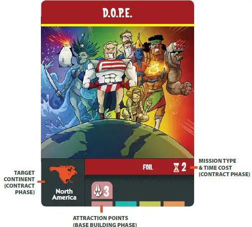 Foil missions: If the Heroes mission is "Foil", immediately discard the Contract card at the specified continent location. Do not replace this contract with a new one. For the rest of this round, there will be one fewer contract on the world map.