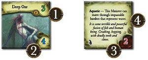4 Abilities & Flavor Text: A monster's abilities, if it has any, are defined on the token's back. A monster's flavor text gives a brief thematic description of the creature's appearance and behavior.