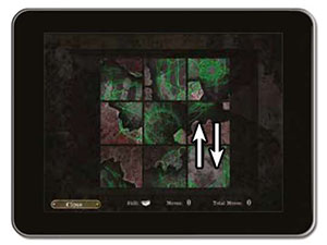 A slide puzzle is a type of puzzle in which an investigator attempts to assemble an image that has been split into six or more pieces. The pieces of a slide puzzle are displayed in a grid and randomized.