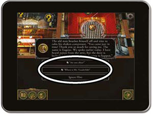 The investigator resolves the effect as instructed by the app which might include additional decisions or a skill test.