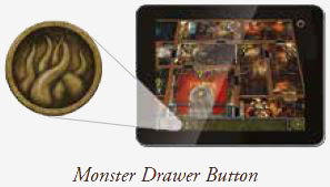 To select a monster, an investigator opens the monster drawer by pressing the monster drawer button. Then he presses a monster's icon in the drawer to select it.