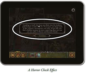 To resolve a horror check against a monster, the investigator selects the monster from the monster drawer and resolves the effect as instructed by the app.
