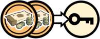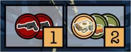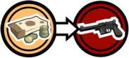 Arrow: Some actions in Locations require trading in Resources from the left of the arrow to obtain rewards on the right.