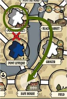After each Worker has been activated, the Resistance Worker must be able to trace a clear route from their present Location-following the white road lines that connect Locations-back to a Safe House.