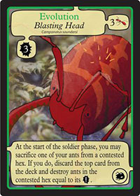 If a player uses this ability, they may destroy any player's ants that are present in that hex. When ants are destroyed, the player whose ants are destroyed decides which ants are lost. If this card's effect causes a hex to become uncontested, no battle will take place there.