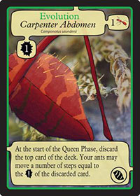 May only move ants with this ability. May move ants into hexes where there are centipedes. If a hex becomes contested as a result of this move, battle does not occur until the following Soldier Phase.