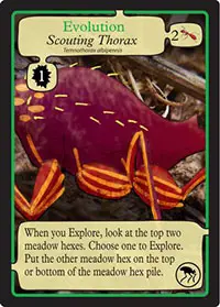 Other players may not move ants out of a hex that is inhabited by a player with the Weaver Thorax. They are trapped. They may move more ants into that hex. They may also use ants in that hex to pay for the cost of cards. This card has no effect on ants in The Great Tunnel.