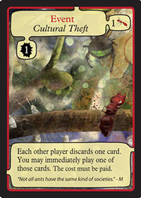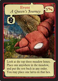 A player must inhabit a collection site in that hex to play this card. The player who plays this card loses ants as well. This card can only be paid for with larvae.