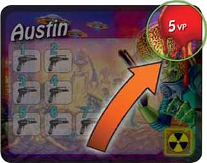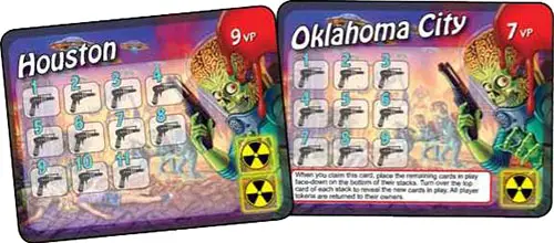 Cities are the most common cards in the game. In most instances, you must roll Ray Guns to claim cities, but some have different requirements.