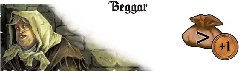 The Beggar demands one coin from each player, in turn, starting with the player to her left and going clockwise.