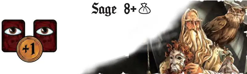 The Sage gets 1 gold coin from the bank and looks at the cards of two other players of his choice.