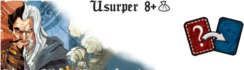 The Usurper chooses a player and attempts to guess their character. The chosen player's card is then revealed.