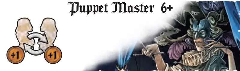 The Puppet Master chooses two players and takes a gold coin from each. The two chosen players must get up and switch places.